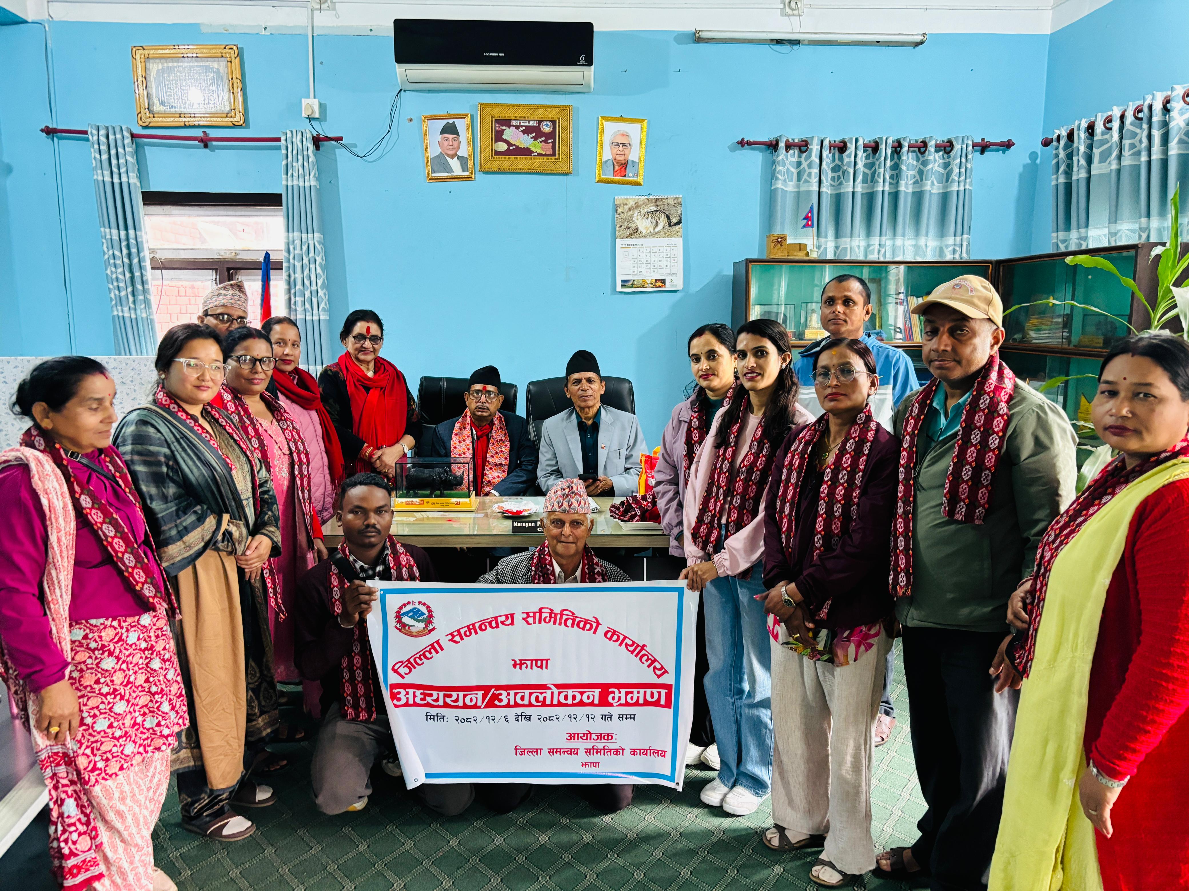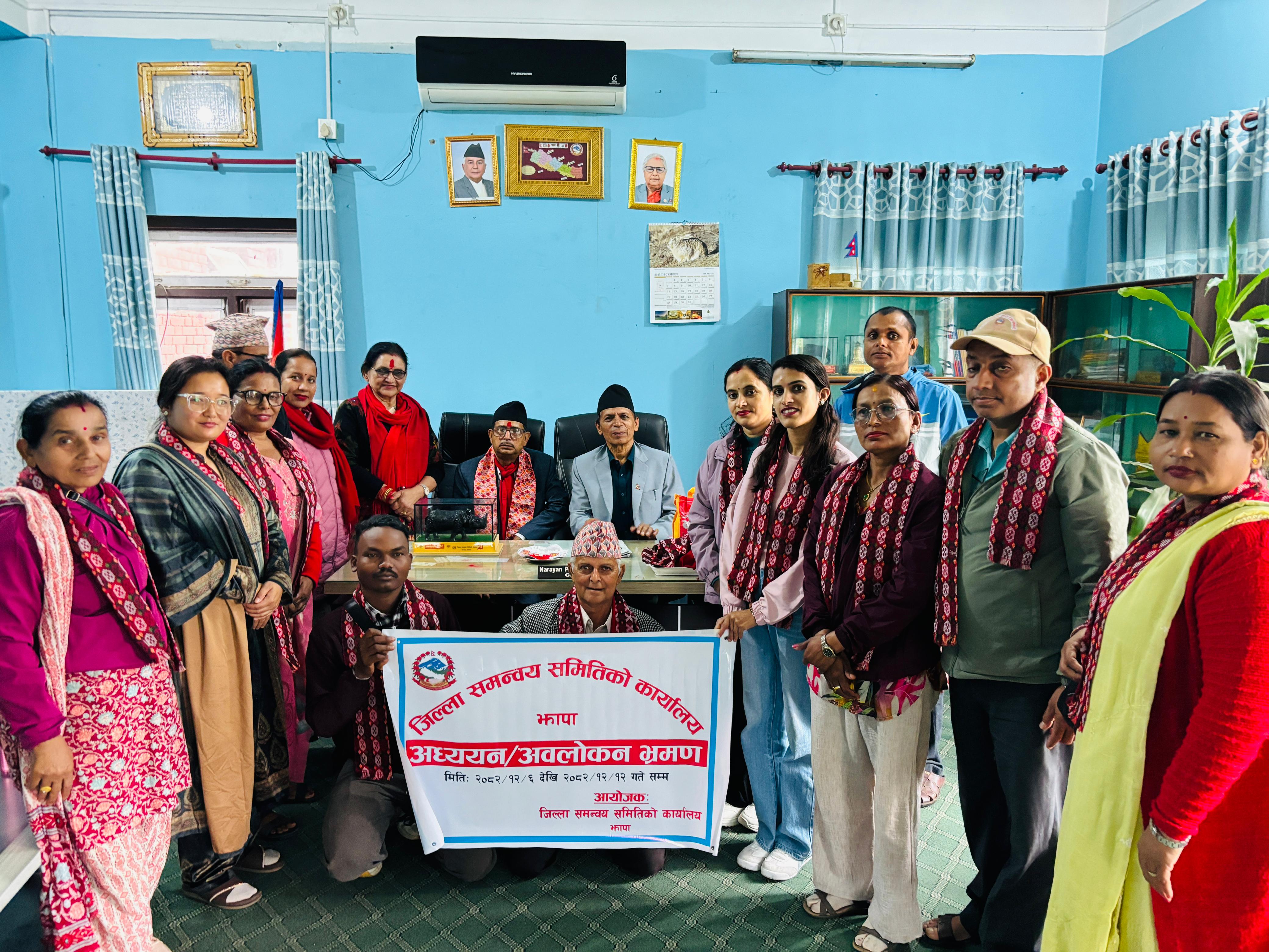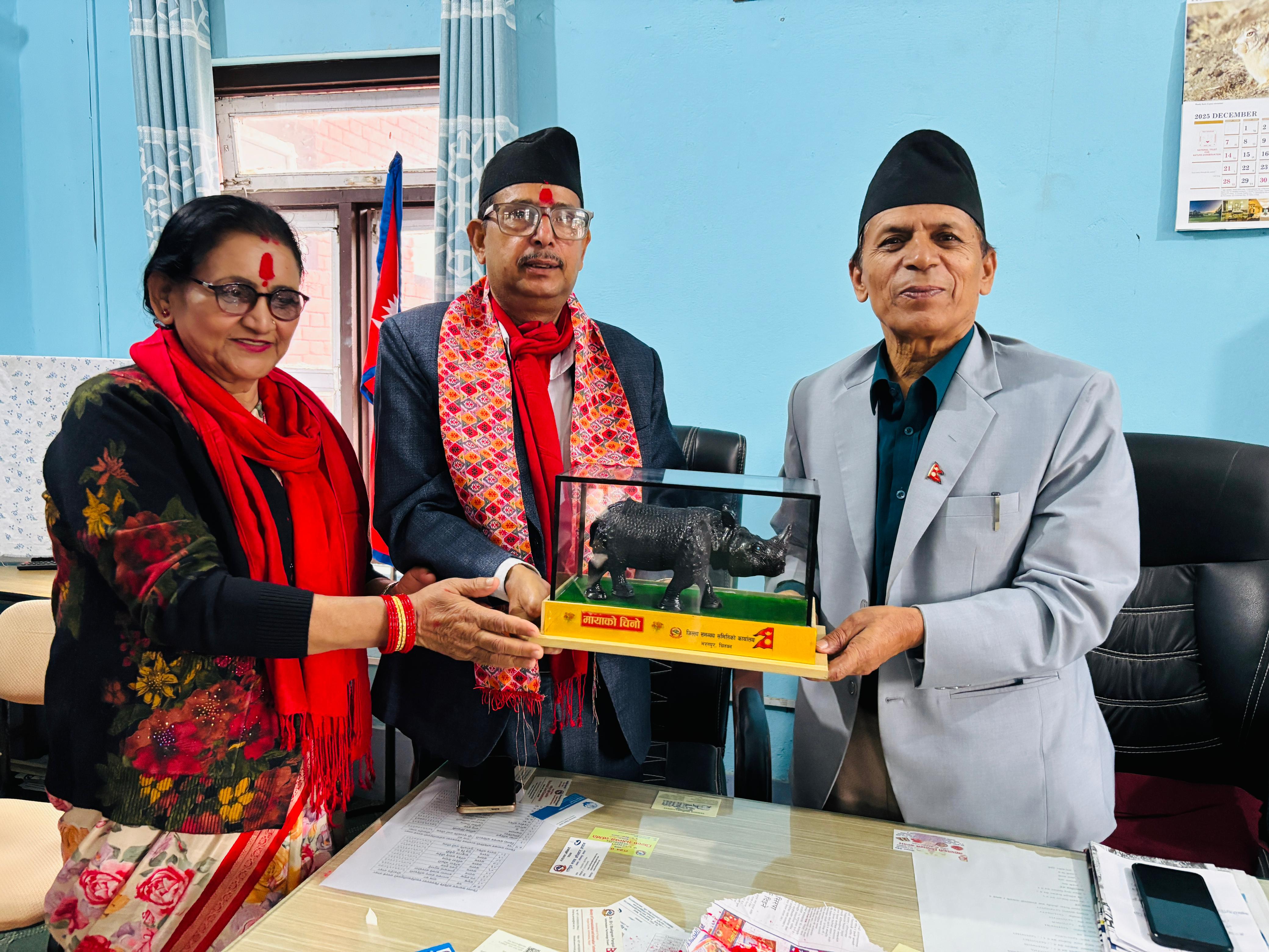 जिल्ला समन्वय समितिको कार्यालय चितवनमा भेटघाट अनुभव आदानप्रदान मायाको चिनो साटासाट कार्यक्रम